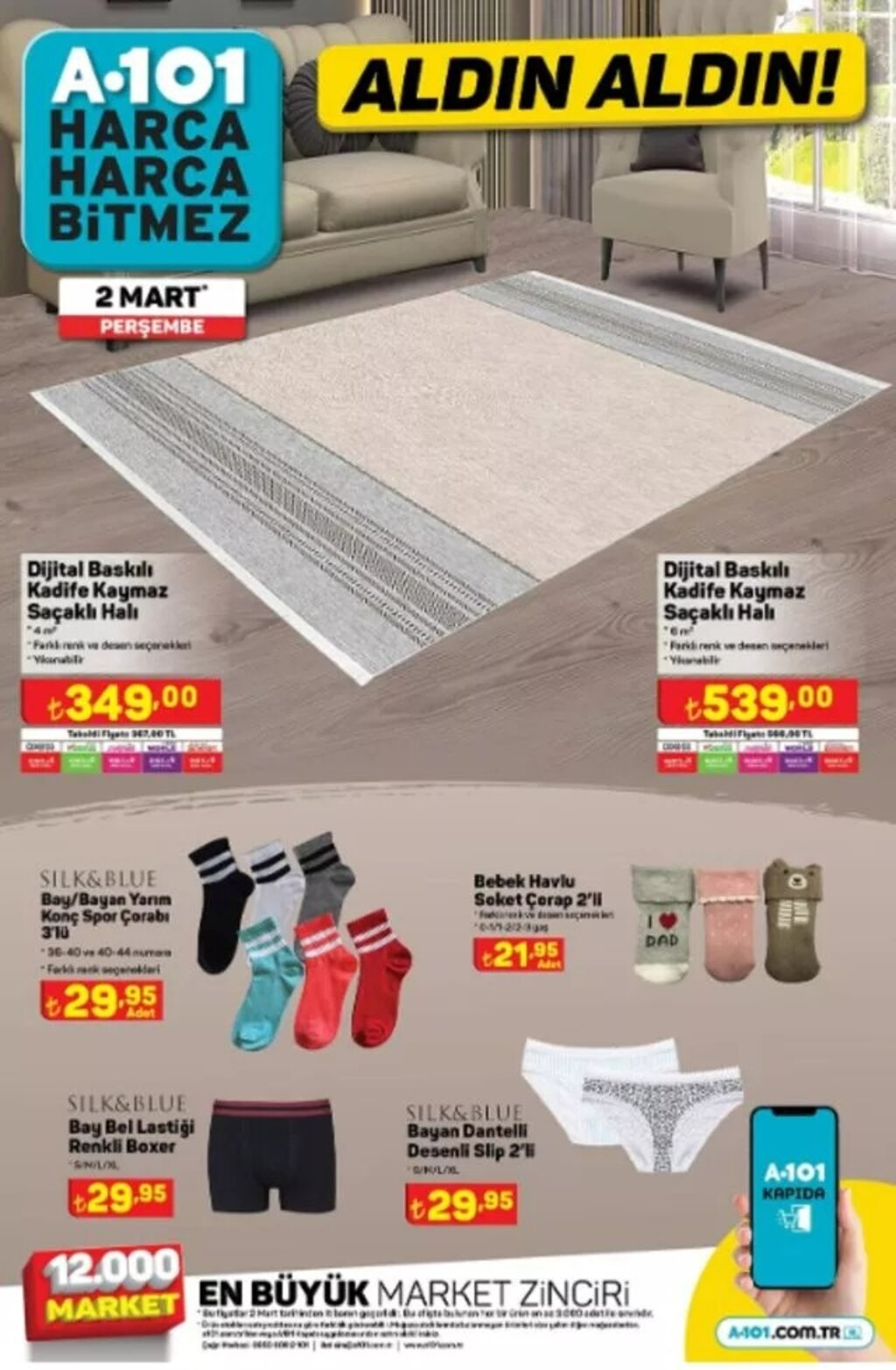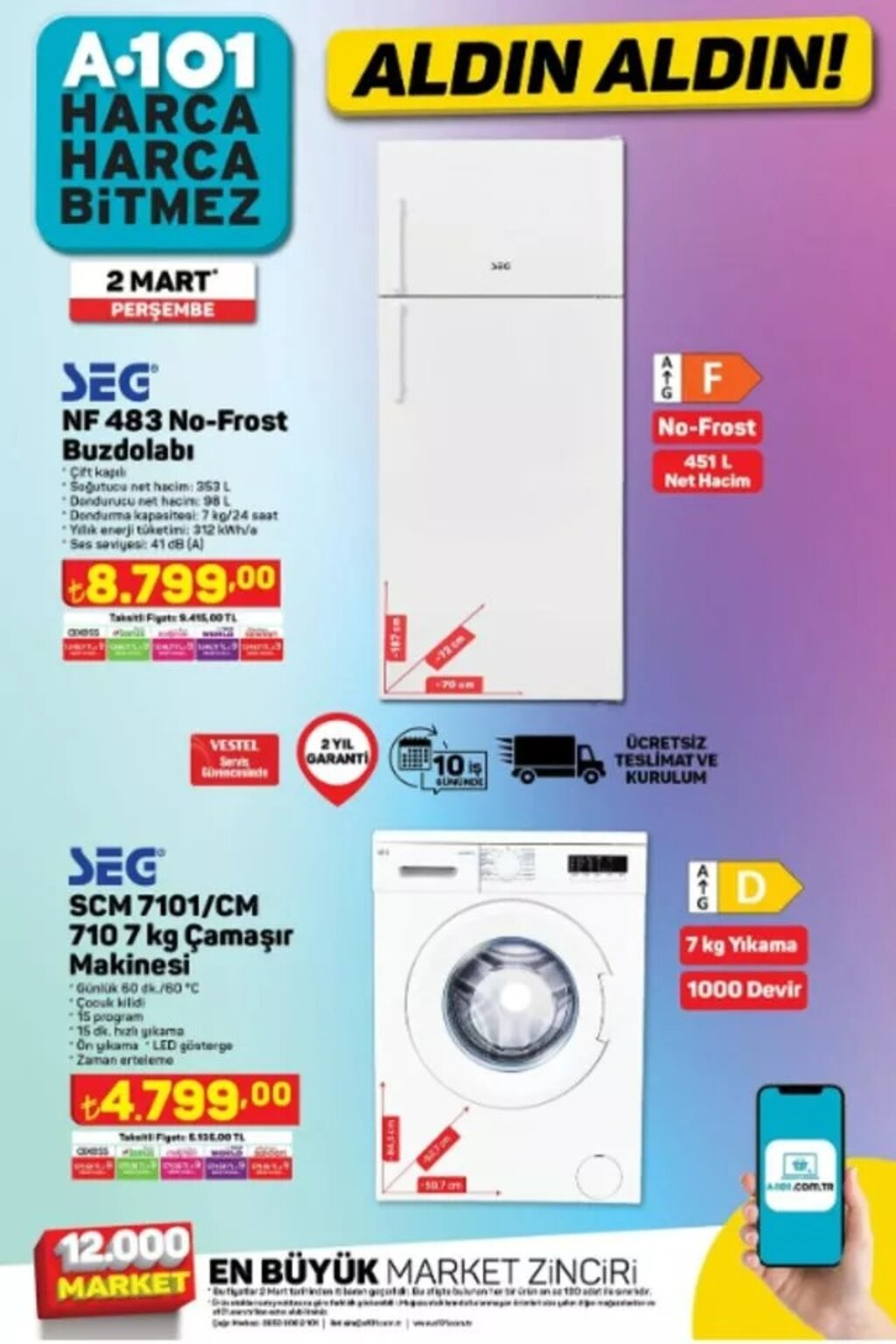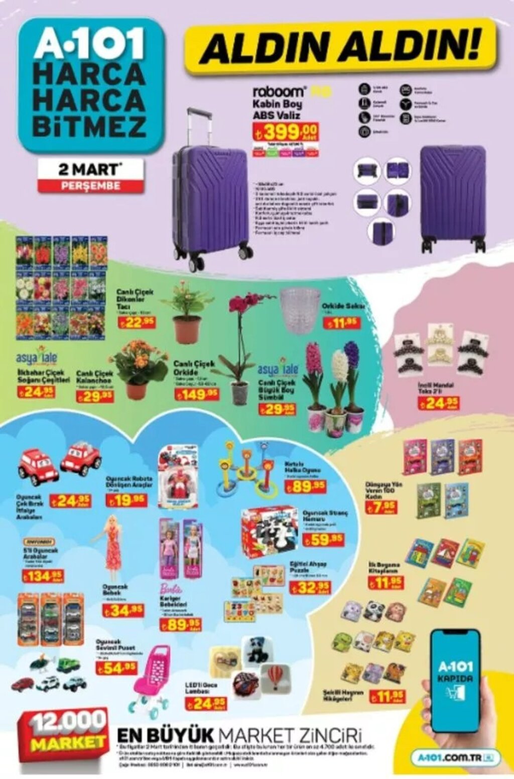 Türkiye genelinde binlerce şubesi bulunan A101, 2 Mart itibarıyla geçerli olacak indirimli ürünler kataloğunu yayımladı. Toplam 8 sayfadan oluşan kampanya listesinde beyaz eşyadan elektroniğe, gıdadan temizlik ve tekstil ürünlerine kadar birçok ürün uygun fiyatlarla satışa sunulacak.