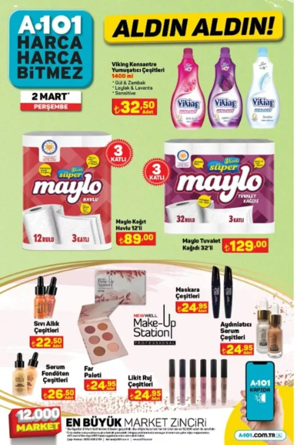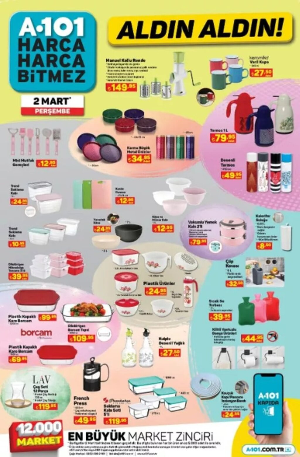 A101’in 2 Mart indirim kataloğundaki ürünlerin stoklarla sınırlı olduğu ve kampanyanın belirtilen tarihten itibaren mağazalarda geçerli olacağı bildirildi.