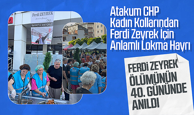 Cumhuriyet Halk Partisi Atakum İlçe Örgütü Kadın Kolları, Başkan Zeyrek’i anmak amacıyla anlamlı bir lokma hayrı düzenledi. 18 Temmuz 2025 Cuma günü gerçekleştirilen etkinlikte, rahmetli başkan için dökülen lokma Cuma Pazarı’ndaki esnaf ve vatandaşlara ikram edildi.