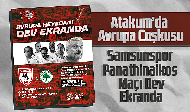 Atakum Belediyesi, Samsunspor’un UEFA Avrupa Ligi Play-Off turunda Panathinaikos ile oynayacağı kritik maçı dev ekranda taraftarlarla buluşturacak.