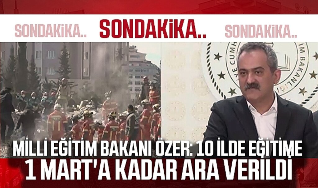 Bakan Özer, Kahramanmaraş’ta yaptığı açıklamada, deprem bölgesinde eğitime ara kararının mevcut şartlar göz önünde bulundurularak alındığını belirtti. Açıklamaya göre, 10 ilde eğitim ve öğretime 1 Mart’a kadar ara verilecek. 1 Mart itibarıyla ise il genelinde toplu bir başlangıç yerine ilçe ve okul temelli değerlendirmeler yapılacak.