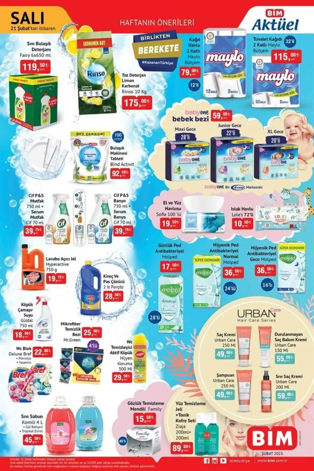 Türkiye genelinde uygun fiyatlı ürünleriyle bilinen perakende zinciri BİM, 21 Şubat Salı günü itibarıyla geçerli olacak yeni aktüel ürünler kataloğunu yayımladı. Haftanın fırsatları arasında özellikle temizlik ürünleri, gıda ürünleri ve bebek bakım ürünlerinde dikkat çeken fiyatlar yer aldı. Vatandaşların yoğun ilgi gösterdiği katalogta birçok temel ihtiyaç ürünü uygun fiyatlarla satışa sunulacak.