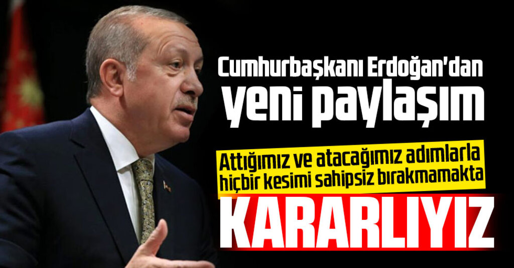 Cumhurbaşkanı Recep Tayyip Erdoğan, sosyal medya hesabı üzerinden yaptığı paylaşımla devletin tüm imkanlarının vatandaşlar için seferber edildiğini vurguladı. Ekonomik ve sosyal hayata yönelik desteklerin kararlılıkla süreceğini belirten Erdoğan, "Hiçbir kesimi sahipsiz bırakmamakta kararlıyız" dedi.