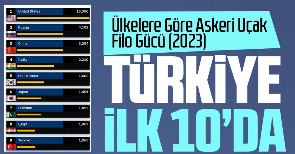 Dünyanın en güçlü hava kuvvetleri listesini paylaşılan listede: uçak sayısı, kullanılan uçakların niteliği, pilot ve askeri sayı, orduların bütçesi gibi çeşitli kriterler üzerine duruldu.Türk Hava Kuvvetleri 9'uncu sırada