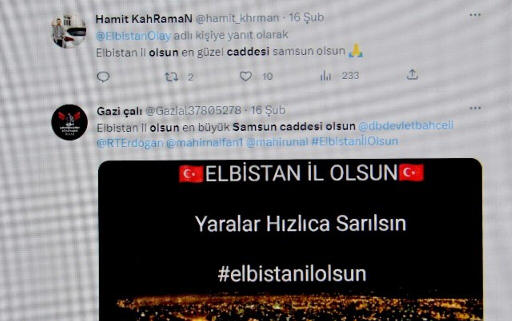 Bölgedeki yardım faaliyetlerine dair video paylaşan bir vatandaş, Samsun halkına ve belediyesine olan teşekkürlerini şu sözlerle ifade etti: "Samsun’daki canlarımız olmasaydı belki Elbistan’ın yarısı enkaz altında kalırdı. Gelen yardım konvoylarının büyük çoğunluğu Samsun’dandı. Kepçeler, iş makineleri ve veteriner hekimlere kadar herkes buradaydı. Allah tüm Samsun halkından razı olsun."