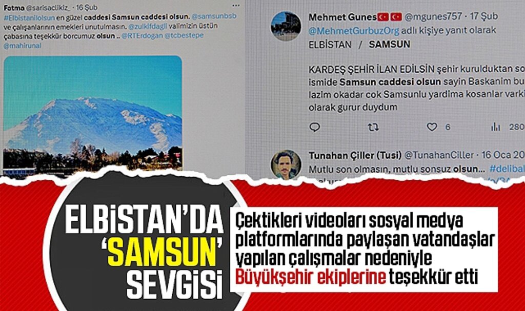 Samsun Büyükşehir Belediyesi ekiplerinin bölgedeki özverili mücadelesine tanıklık eden afetzedeler, sosyal medya platformları üzerinden minnet mesajları paylaşıyor. Elbistan halkı, yapılan yardımların ve yürütülen çalışmaların anısına ilçenin en işlek caddelerinden birine "Samsun" adının verilmesini ve iki şehrin "Kardeş Şehir" ilan edilmesini talep ediyor.