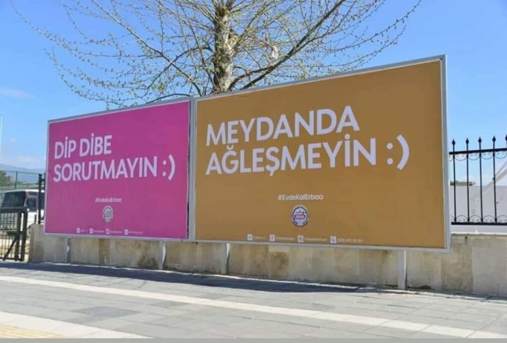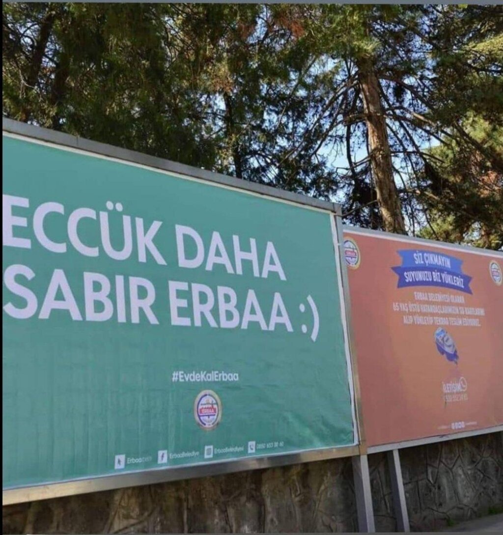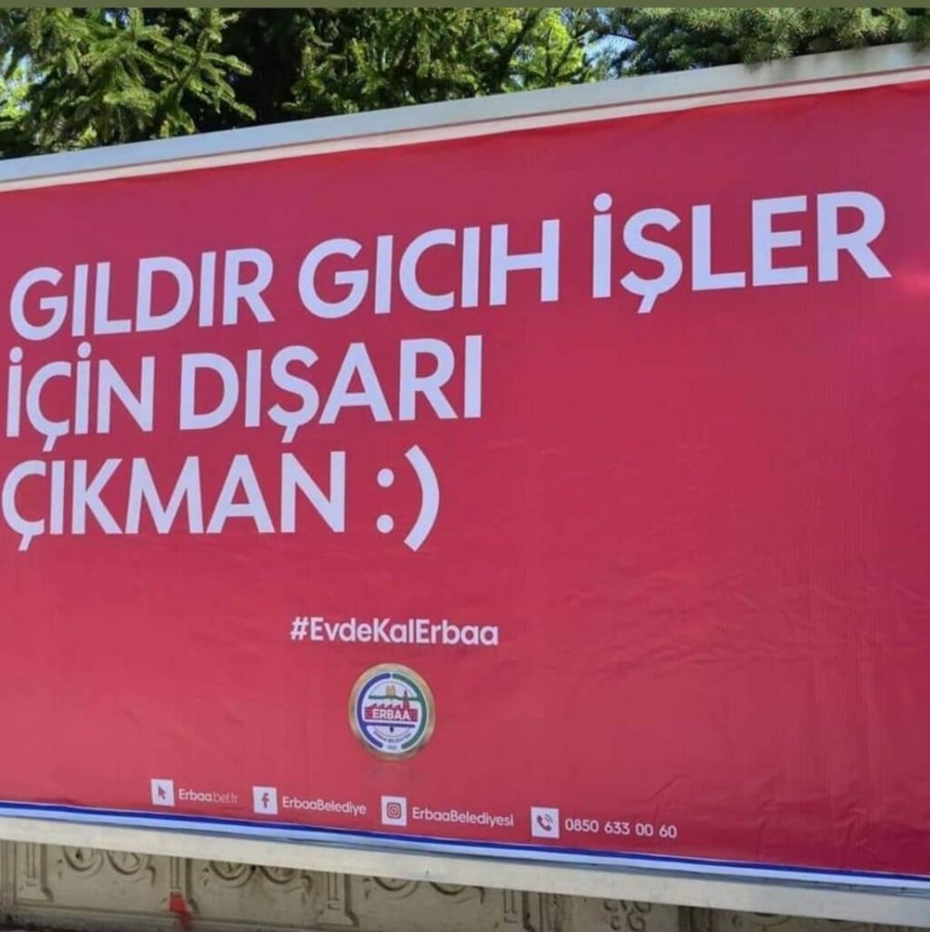 Tokat’ın Erbaa Belediyesi, koronavirüs salgınına karşı yürütülen "Evde Kal" kampanyasına yöresel bir dokunuş katarak dikkat çekici bir çalışmaya imza attı. Vatandaşların sosyal mesafeyi koruması ve sokağa çıkmaması için kentin işlek noktalarındaki billboardlara asılan şiveli afişler, hem uyarı görevini yaptı hem de görenleri gülümsetti.