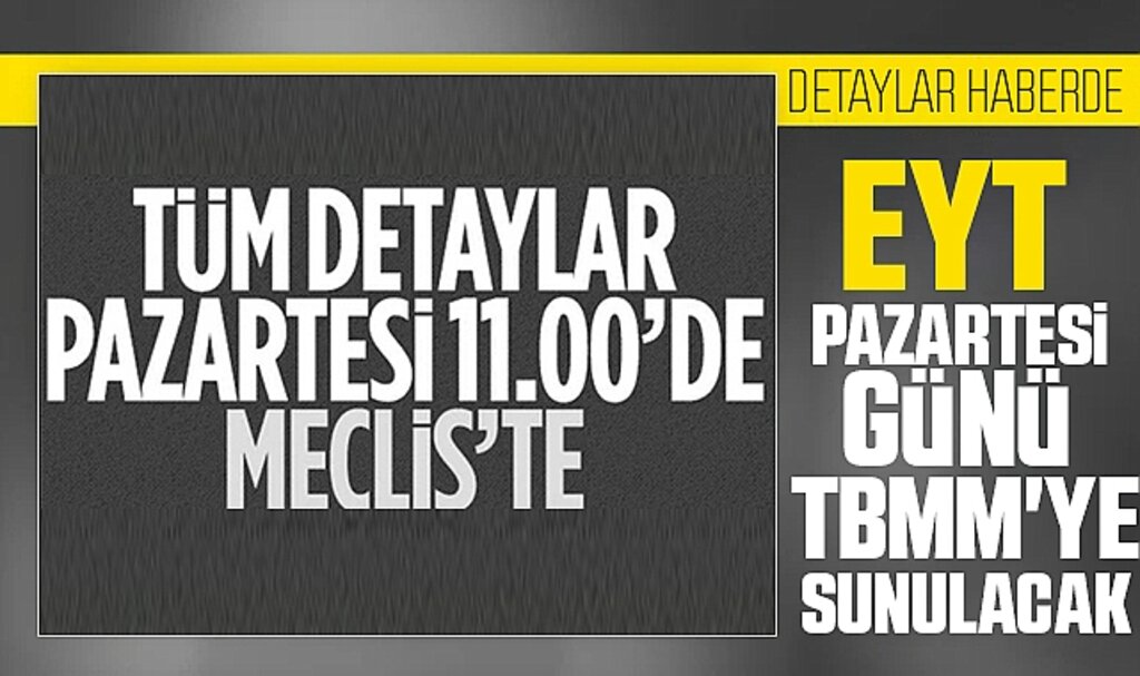Milyonlarca vatandaşın büyük bir heyecanla beklediği Emeklilikte Yaşa Takılanlar (EYT) düzenlemesinde yasal süreç nihayete eriyor. AK Parti Grup Başkanvekili Mehmet Emin Akbaşoğlu, Meclis’te yaptığı açıklamada, uzun süredir üzerinde çalışılan yasa teklifinin TBMM Başkanlığına sunulacağı tarihi kamuoyu ile paylaştı.