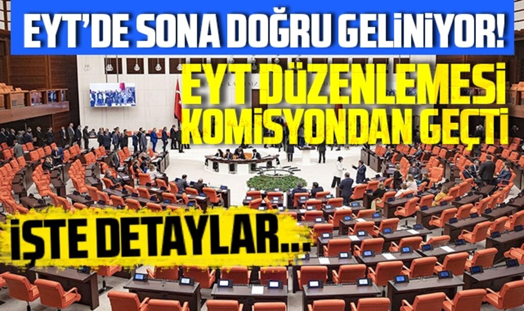 Son dakika haberine göre, EYT düzenlemesini içeren kanun teklifi, TBMM Plan ve Bütçe Komisyonu’nda yapılan görüşmelerin ardından kabul edildi. Komisyon aşamasının tamamlanmasıyla birlikte teklifin, önümüzdeki günlerde TBMM Genel Kurulu’nda görüşülmesi bekleniyor.