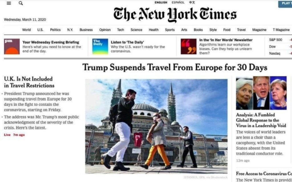 The New York Times, Avrupa’ya yönelik seyahat yasağıyla ilgili bir haberde İstanbul’dan bir fotoğraf kullandı.