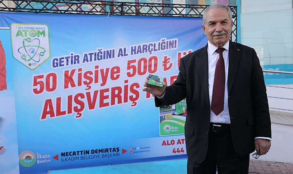 İlkadım Belediyesi’nin yürüttüğü “Getir Atığını, Al Harçlığını” projesi kapsamında vatandaşların geri dönüşüm sürecine katılması teşvik edilirken, atıkların çevreye zarar vermeden yeniden değerlendirilmesi amaçlanıyor.