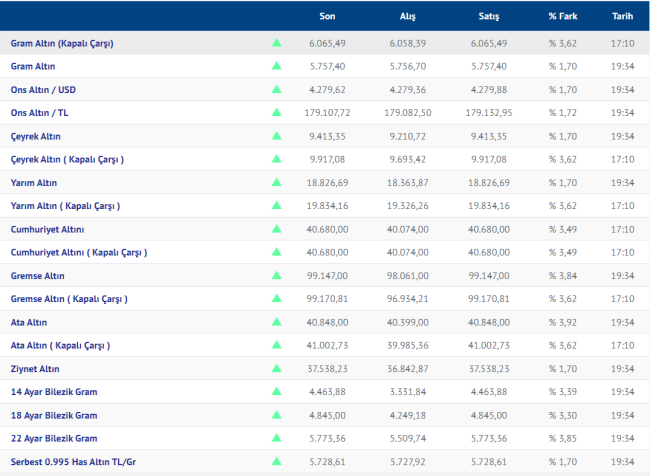 Resmi piyasalarda gram altın 5 bin 757 liradan işlem görürken, Kapalıçarşı’daki serbest piyasa fiyatı bu rakamı geride bırakarak 6 bin liranın üzerine çıktı. Böylece altın, yatırımcılarına son haftalarda önemli kazanç sağladı.