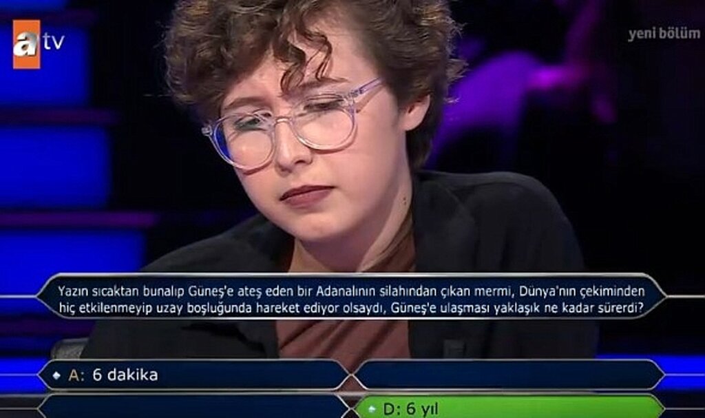 Kim Milyoner Olmak İster? 15 Ağustos Bölümünde 50 Bin TL'lik Soru: Adanalı Bir Yarışmacının Güneş'e Ateş Ettiği Mermi Ne Kadar Sürede Ulaşır?