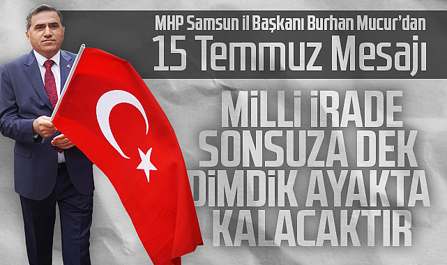 Milliyetçi Hareket Partisi (MHP) Samsun İl Başkanı Burhan Mucur, 15 Temmuz Demokrasi ve Millî Birlik Günü dolayısıyla yayımladığı mesajda, Türk milletinin demokrasi ve bağımsızlık mücadelesine dikkat çekti.