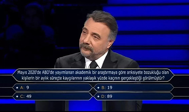 Ekranların en çok kazandıran ve her sorusuyla yeni bir bilgi penceresi açan "Kim Milyoner Olmak İster", son bölümünde modern dünyanın en yaygın sorunlarından biri olan anksiyete (kaygı bozukluğu) üzerine bilimsel bir soruyu gündeme taşıdı. Yarışmacının büyük ödül yolunda karşılaştığı bu soru, sadece yarışmanın gidişatını değil, izleyicilerin kendi hayatlarına bakış açısını da etkiledi. Akademik bir çalışmaya dayandırılan soru, "Boşuna mı kaygılanıyoruz?" sorusunu akıllara getirdi.