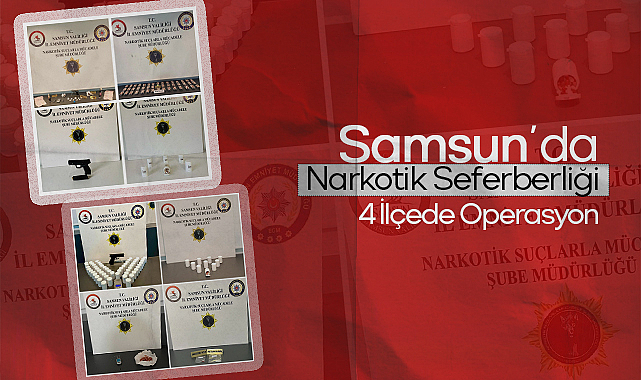 Samsun İl Emniyet Müdürlüğü Narkotik Suçlarla Mücadele Şube Müdürlüğü ekipleri, kent genelinde uyuşturucu madde ticareti ve kullanımının engellenmesine yönelik geniş kapsamlı bir operasyon gerçekleştirdi. İlkadım, Atakum, Canik ve Çarşamba ilçelerini kapsayan eş zamanlı çalışmalarda, sokak satıcılarına ve uyuşturucu şebekelerine büyük bir darbe indirildi. Çok sayıda adrese yapılan baskınlarda uyuşturucu maddelerin yanı sıra silah ve suçtan elde edilen paralar ele geçirildi.