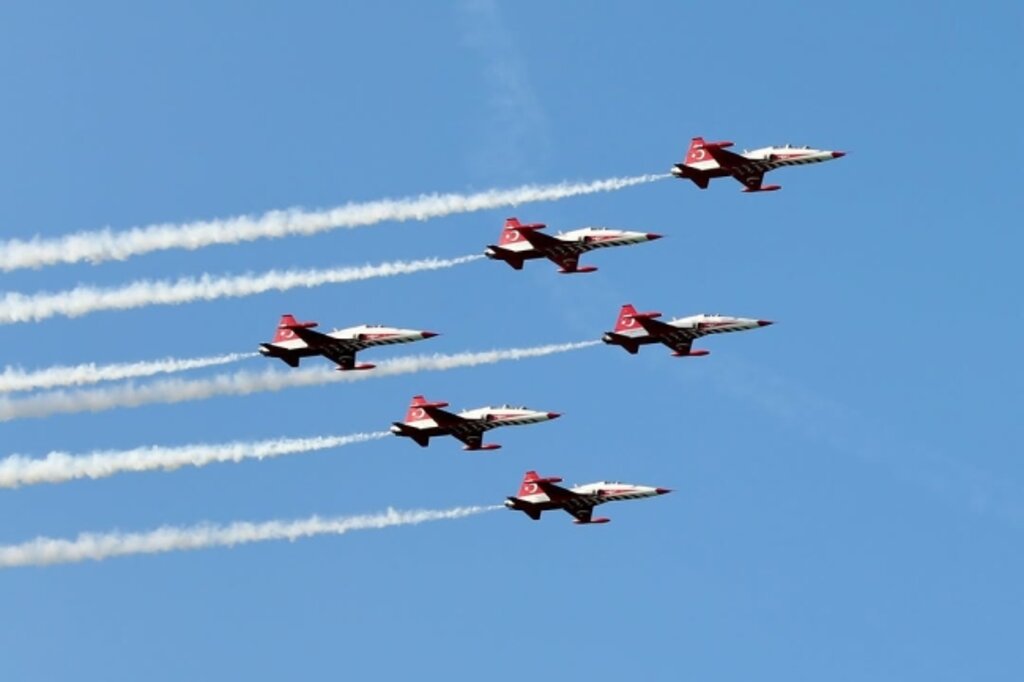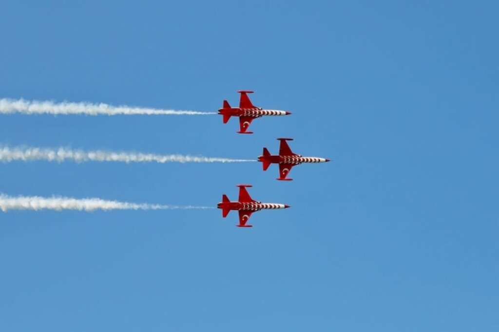 Altı jet uçağının yer aldığı gösteride Türk Yıldızları, gökyüzünde adeta görsel bir şölen sundu. Uçakların koordineli hareketleriyle oluşturduğu Türk bayrağının simgeleri olan hilal ve yıldız figürü, izleyenleri hem gururlandırdı hem de duygulandırdı.