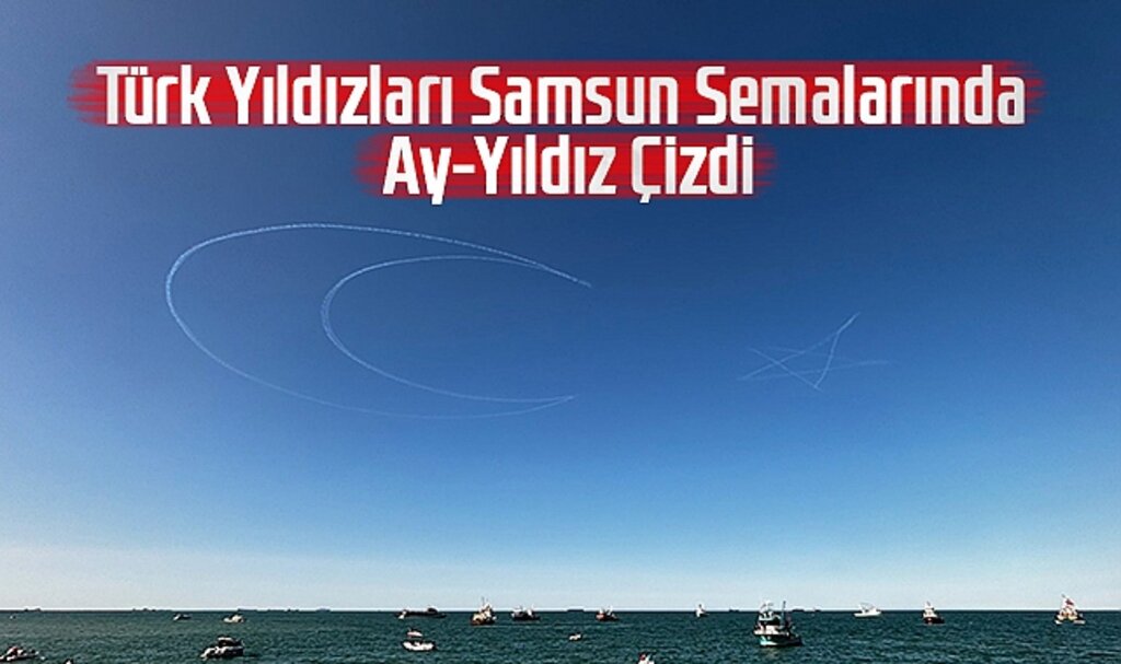 19 Mayıs’ın ruhunu ve Atatürk’ün Samsun’a çıkarak başlattığı kurtuluş mücadelesinin önemini hatırlatan Türk Yıldızları, gökyüzünde çizdikleri ay-yıldızla milli birlik ve beraberlik mesajı verdi.