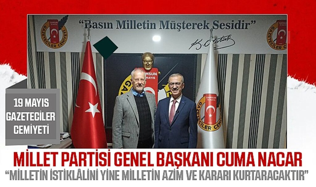 Millet Partisi Genel Başkanı Cuma Nacar, Samsun 19 Mayıs Gazeteciler Cemiyeti’nde basın mensuplarıyla bir araya geldi. Gündeme dair açıklamalarda bulunan Nacar, 6 Şubat depremleri sonrası yürütülen çalışmalar, kurumların işleyişi ve ekonomik çözüm önerileri hakkında partisinin görüşlerini paylaştı.
