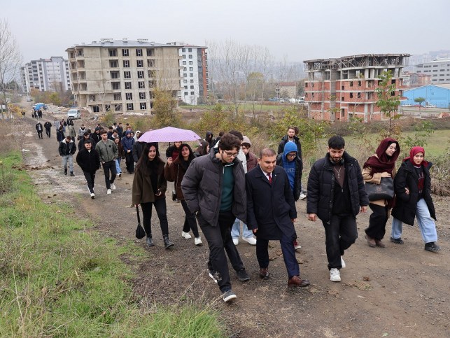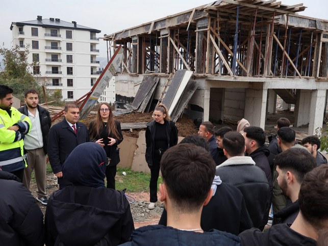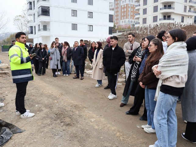 Teknik gezi kapsamında Canik’teki şantiye alanlarını ziyaret eden öğrencilere, bir yapının doğumundan tamamlanmasına kadar geçen tüm evreler anlatıldı. İnşaat projelerinin temel aşamasından başlayarak, taşıyıcı sistemlerin kurulumu, ince işçilik detayları ve çatı uygulamaları gibi kritik noktalar Sezgin Aydın tarafından detaylandırıldı. Öğrenciler, yapı üretim sürecinin sadece çizim masasında bitmediğini, sahadaki dinamiklerin projenin başarısında belirleyici olduğunu yerinde görme imkânı yakaladı.