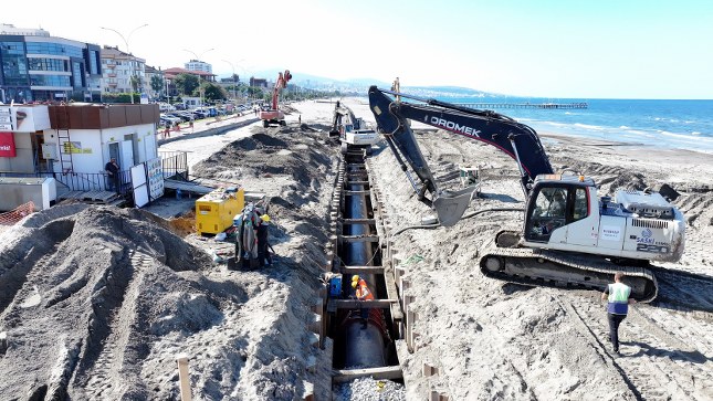Proje kapsamında inşa edilen 4 bin 550 metre uzunluğundaki atık su kolektör hattının 2 bin 342 metresi tamamlandı. Yeni hat, Çobanlı İskelesi TM3 Terfi Merkezi’nden başlayarak İl Emniyet Müdürlüğü TM2 Terfi Merkezi’ne kadar uzanıyor. Bu kapsamda 600 mm çapındaki yüksek dayanımlı polietilen borular, deniz seviyesinin altına modern mühendislik teknikleriyle döşeniyor.