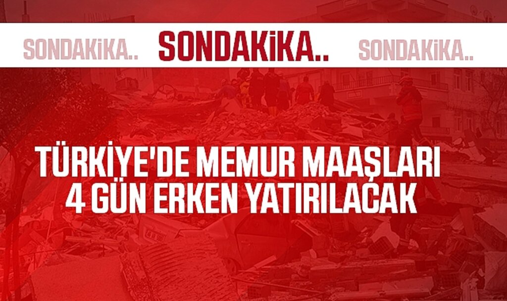 Maaş ödemelerinin hızlı ve sorunsuz bir şekilde gerçekleştirilebilmesi amacıyla ilgili birimler tarafından gerekli çalışmaların başlatıldığı bildirildi. Erken ödeme kararıyla birlikte, kamu çalışanlarının deprem sürecinde oluşabilecek mağduriyetlerinin önüne geçilmesi hedefleniyor.