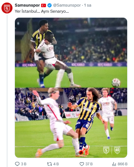 Maçın ardından Samsunspor kulübü de sosyal medya hesaplarından hakem kararlarına yönelik paylaşımlar yaptı. Kulübün paylaşımında “Yer İstanbul… Aynı Senaryo…” ifadelerine yer verildi.